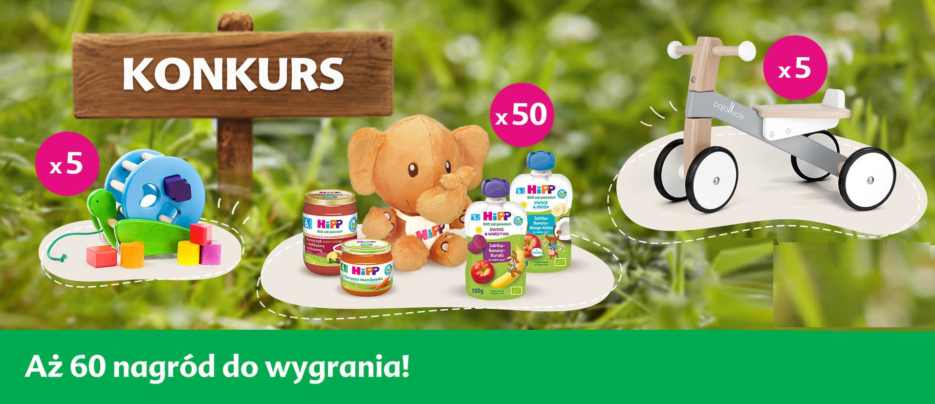- 5x nagroda główna I stopnia złożona z drewnianego rowerka od BAJO oraz zestawu produktów i gadżetów HiPP!