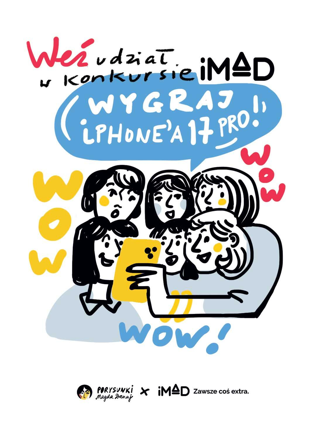 • Odebraniu arkusza naklejek, które należy wykorzystać w odpowiedzi na pytanie konkursowe. Arkusz naklejek można odebrać w salonach stacjonarnych iMad.