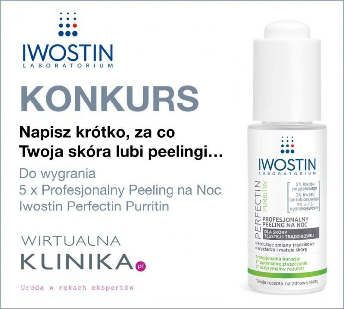 Z okazji Międzynarodowego Dnia Urody przygotowaliśmy dla Was konkurs. Napiszcie w komentarzach (do 15.09 do 23:59), za co Wasze skóry lubią peelingi. Spośród wszystkich wypowiedzi wybierzemy pięć najciekawszych, których autorzy otrzymają od nas profesjonalne peelingi do cery tłustej i trądzikowej marki Iwostin. Powodzenia!
