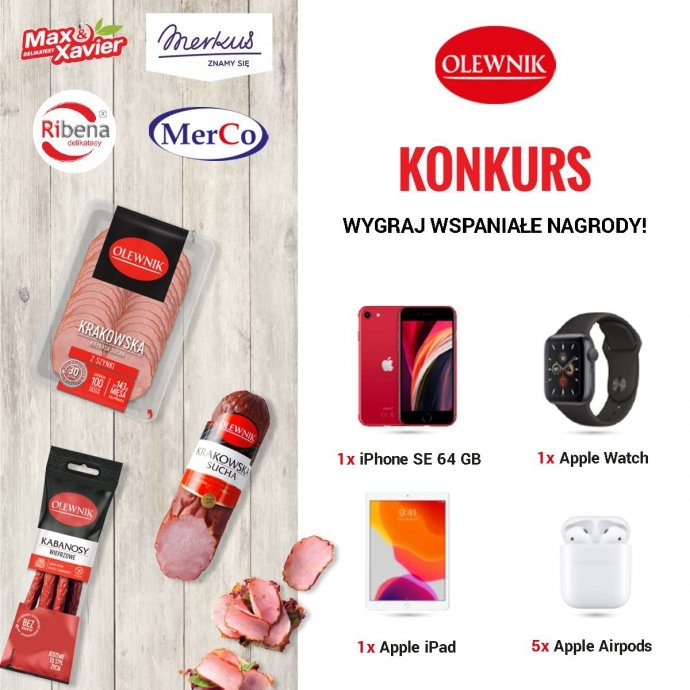 • Kup produkt Olewnik o wartości min. 10 zł z listy produktów promocyjnych (wyszczególnione w regulaminie konkursu) w w jednym ze 100 sklepów detalicznych sieci Merco zlokalizowanych w północnej części kraju.