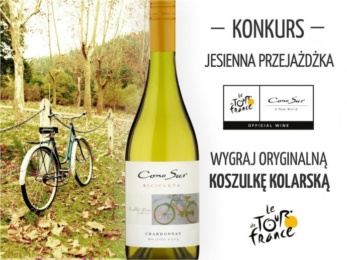 12x butelka wina Cono Sur Bicicleta oraz oryginalna koszulka kolarska z Tour de France