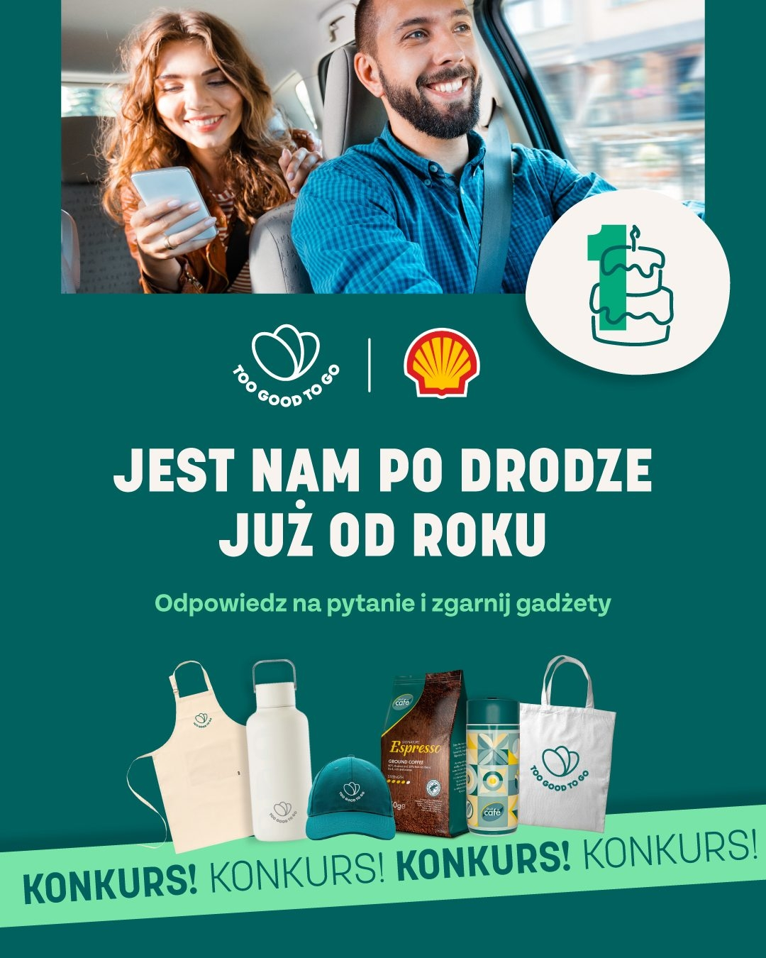 Kubek termiczny Shell Cafe + Kawa Shell Café 250g + Fartuch do gotowania z logo Too Good To Go + produkty: Shell Cafe. Orzeszki ziemne o smaku chilli limonka 100g, Shell Cafe. Flapjack Maślany baton owsiany 70g, Shell Cafe. Flapjack Baton owsiany z belgijską czekoladą 70g, Shell Cafe. Flapjack Baton owsiany z suszonymi owocami 70g, Shell Cafe. Ziarna kawy w belgijskiej białej czekoladzie ze zmieloną kawą 40g, Shell V-Power Red. Napój energetyczny. Puszka 0.25l + Voucher do aplikacji Too Good To Go o wartości 100zł wielokrotnego użytku.