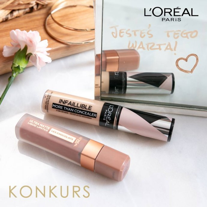 10 x zestaw kosmetyków L’Oreal Paris w składzie: korektor do twarzy Infaillible More Than Concealer oraz matowa szminka w płynie Les Chocolats o łącznej cenie zestawu 120 zł.