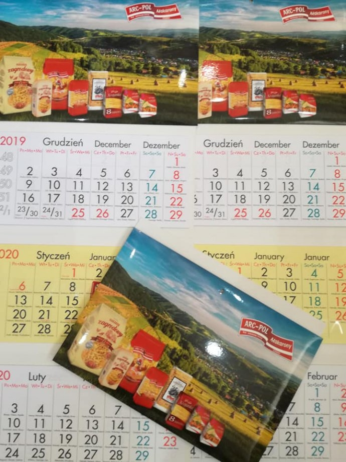 - 5 kalendarzy trójdzielnych z logo Organizatora
