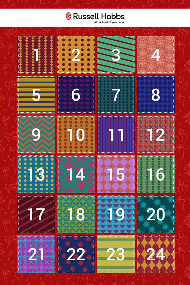 Odkryj magię oczekiwania na Święta razem z kalendarzem adwentowym Russell Hobbs! Skorzystaj z szansy na wygranie cennych nagród i weź udział w konkursach, które przygotowaliśmy dla Was na każdy dzień – aż do Wigilii!