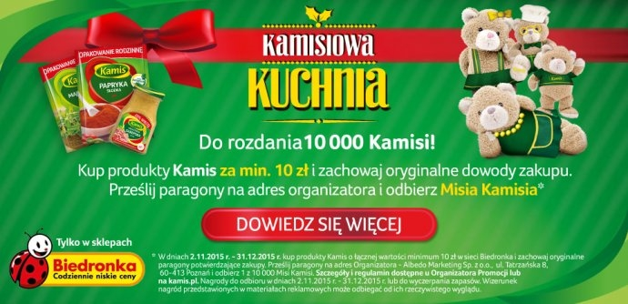 W dniach 02.11.2015 r. – 31.12.2015 r. kup produkty Kamis o łącznej wartości minimum 10 zł w sieci Biedronka