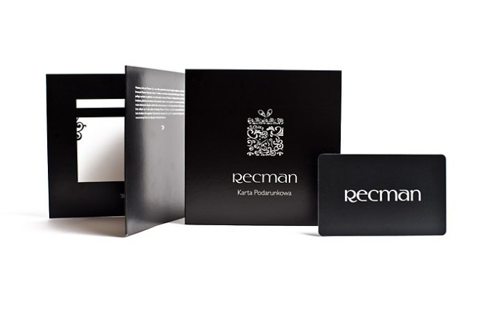 dwie karty podarunkowe Recman o wartości 150 złotych każda.