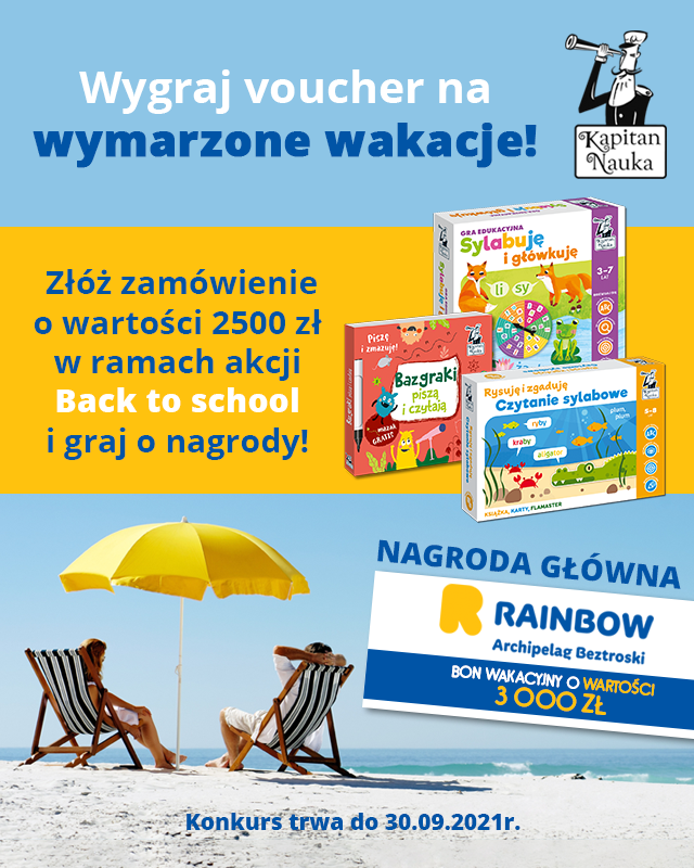 Konkurs skierowany jest do podmiotów gospodarczych, w tym osób fizycznych prowadzących jednoosobową działalność gospodarczą w zakresie sprzedaży detalicznej posiadających sklepy stacjonarne, którzy w okresie od 02.08.2021 r. do 30.09.2021 r. tj. w Okresie trwania Promocji dokonają zakupu produktów marek Kapitan Nauka lub Edgard Games, Edgard Języki Obce o łącznej wartości minimum 2.500,00 zł (dwa tysiące pięćset złotych) netto na maksymalnie 3 fakturach, liczoną według cen sprzedaży netto po rabacie Organizatora