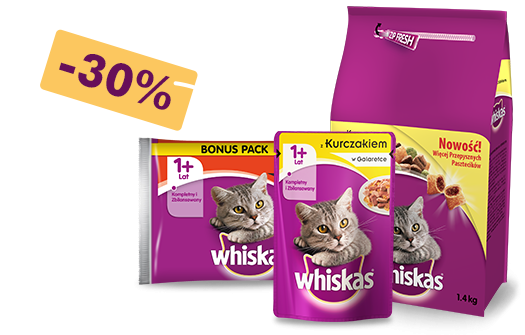 f) Uzupełnić pole jak karma Whiskas uszczęśliwia kota
