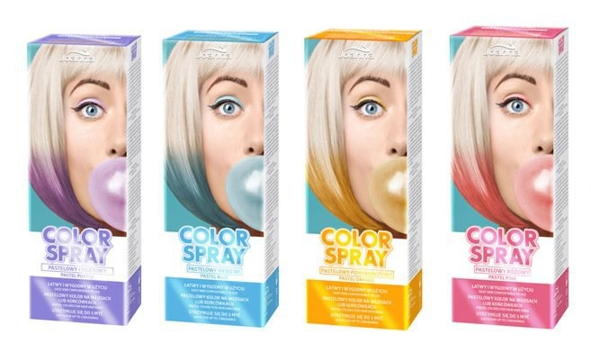zestaw 4 sprejów COLOR SPRAY marki Joanna (kolor niebieski, pomarańczowy, różowy i fioletowy)