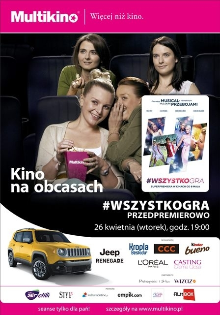 Mamy dla Was podwójne zaproszenia do Multikina: Gdańsk, Warszawa Targówek, Poznań Stary Browar, 26 kwietnia. Aby wziąć udział w konkursie, należy przesłać maila na adres: konkurs@kulturaonline.pl, w temacie wpisując KONKURS #WSZYSTKOGRA i nazwę preferowanego kina, a w treści - podając swoje dane kontaktowe. Na Wasze zgłoszenia czekamy do 26.04 do godz. 10:00.