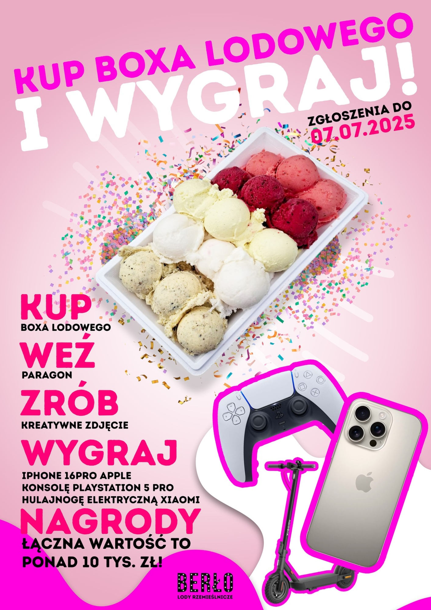 Kup boxa lodowego, zrób kreatywne zdjęcie lodów Berło, polub fanpage i udostępnij post konkursowy