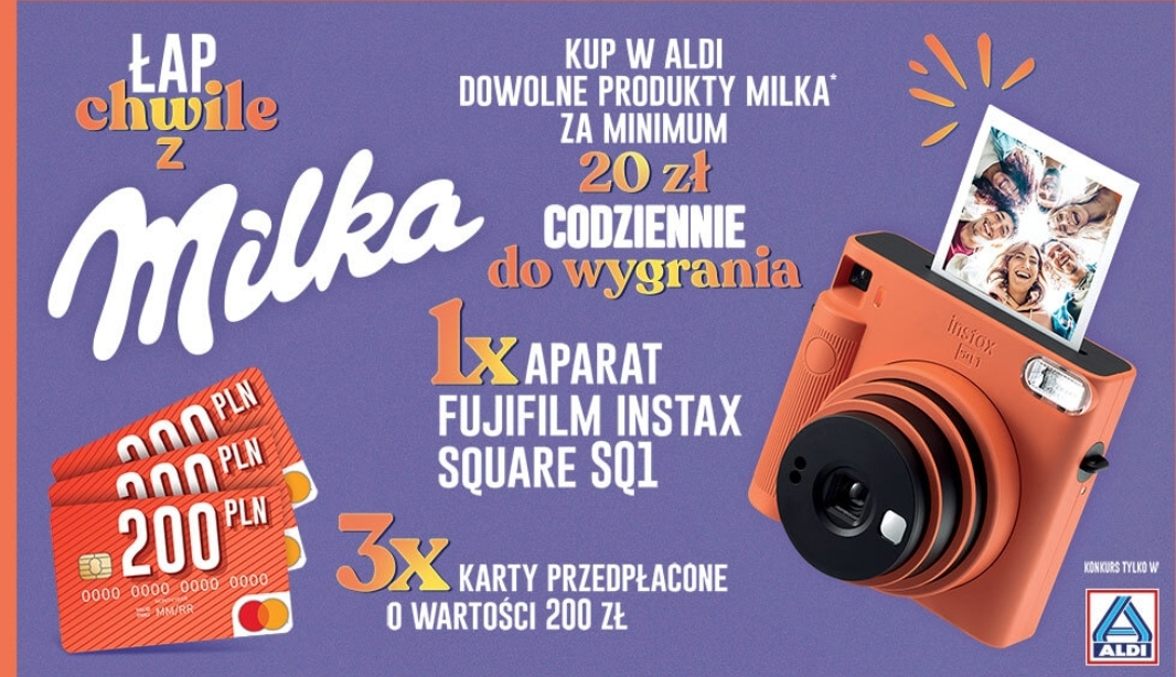 - Kup w Aldi produkty Milka za minimum 20 zł (z wyłączeniem jogurtów, lodów i mlecznych kanapek) i zachowaj paragon