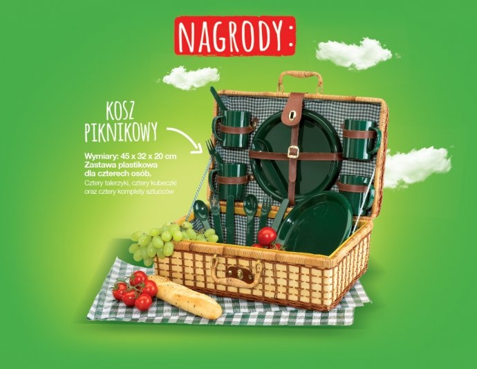 31 koszy piknikowych Green Park z tworzywa sztucznego wraz z zastawą dla 4 osób i obrusem o wartości 157,56zł brutto