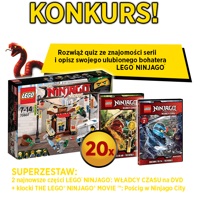 Należy rozwiązać krótki test ze znajomości serii „LEGO® NINJAGO®”i zamieścić w aplikacji konkursowej opis swojego ulubionego bohatera serii „LEGO® NINJAGO®” wraz z uzasadnieniem wyboru.