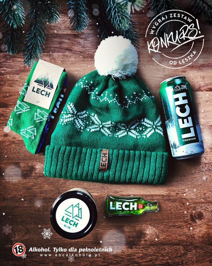 dla 15 najlepszych osób Zimowy zestaw Lecha, w skład którego wchodzi: czapka zimowa, ogrzewacz do rąk, 2 pary skarpetek, świeczka, 4pak piwa Lech Premium w puszce . Łączny koszt jednego zestawu to 116 złotych brutto.