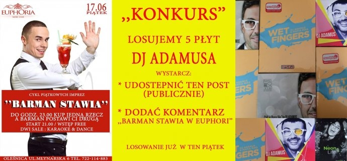 Aby wziąć udział w losowaniu należy publicznie udostępnić post oraz dodać komentarz: "Barman stawia w Euphori"