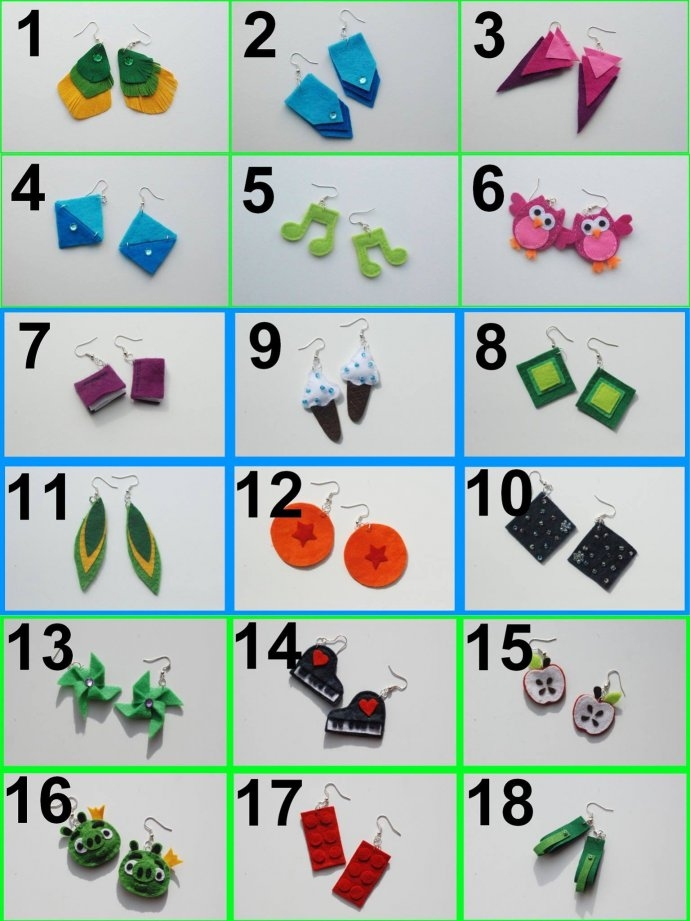 5x wybrana para ręcznie robionych filcowych kolczyków