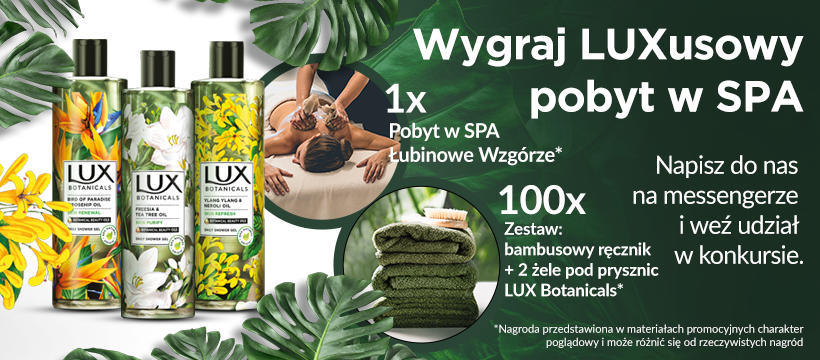 - zadaniem konkursowym jest wybranie jednego z pięciu zapachów żelu pod prysznic Lux Botanicals Polska i udzielenie odpowiedzi na pytanie: