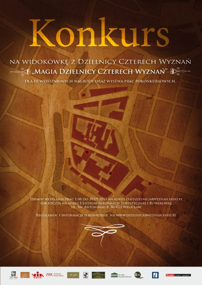 2) pocztą na adres: Centrum Informacji Turystycznej i Rowerowej, ul. św. Antoniego 8, 50-073 Wrocław, z dopiskiem KONKURS MAGIA DZIELNICY CZTERECH WYZNAŃ.