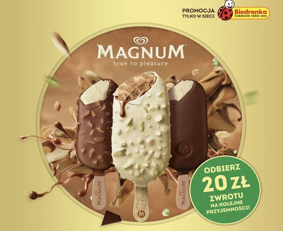 - Kup 3 dowolne lody Magnum na patyku w Biedronce