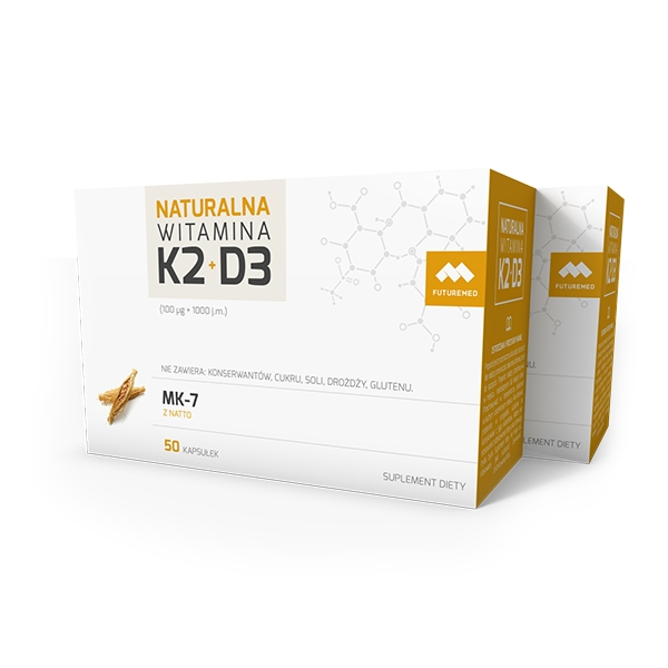 1 x zestaw naturalnej witaminy K2+D3, (2 x 50 kapsułek)