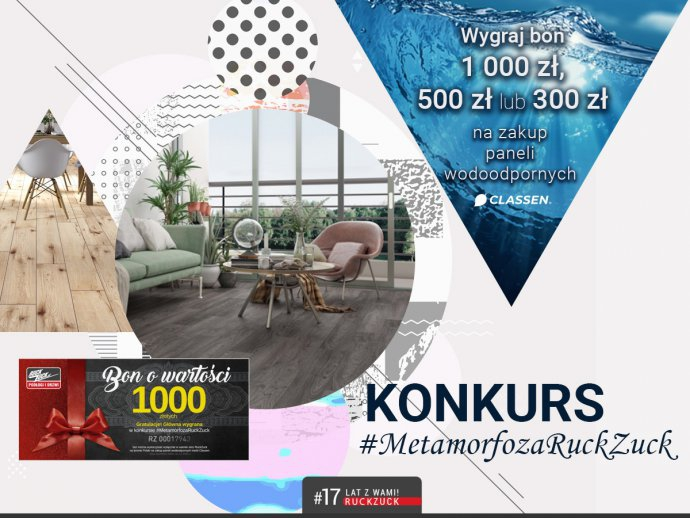 Bon będzie można zrealizować tylko i wyłącznie na zakup paneli wodoodpornych marki @ClassenFloorPoland w wybranym przez zwycięzcę salonie RuckZuck.