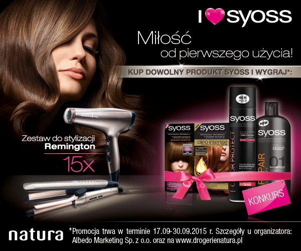 Kup dowolny produkt Syoss od 17.09.-30.09.2015 r. w Drogeria Natura i dokończ zdanie "W stylizacji włosów najważniejsze to ..." Odpowiedz wysłać na nr 7043
