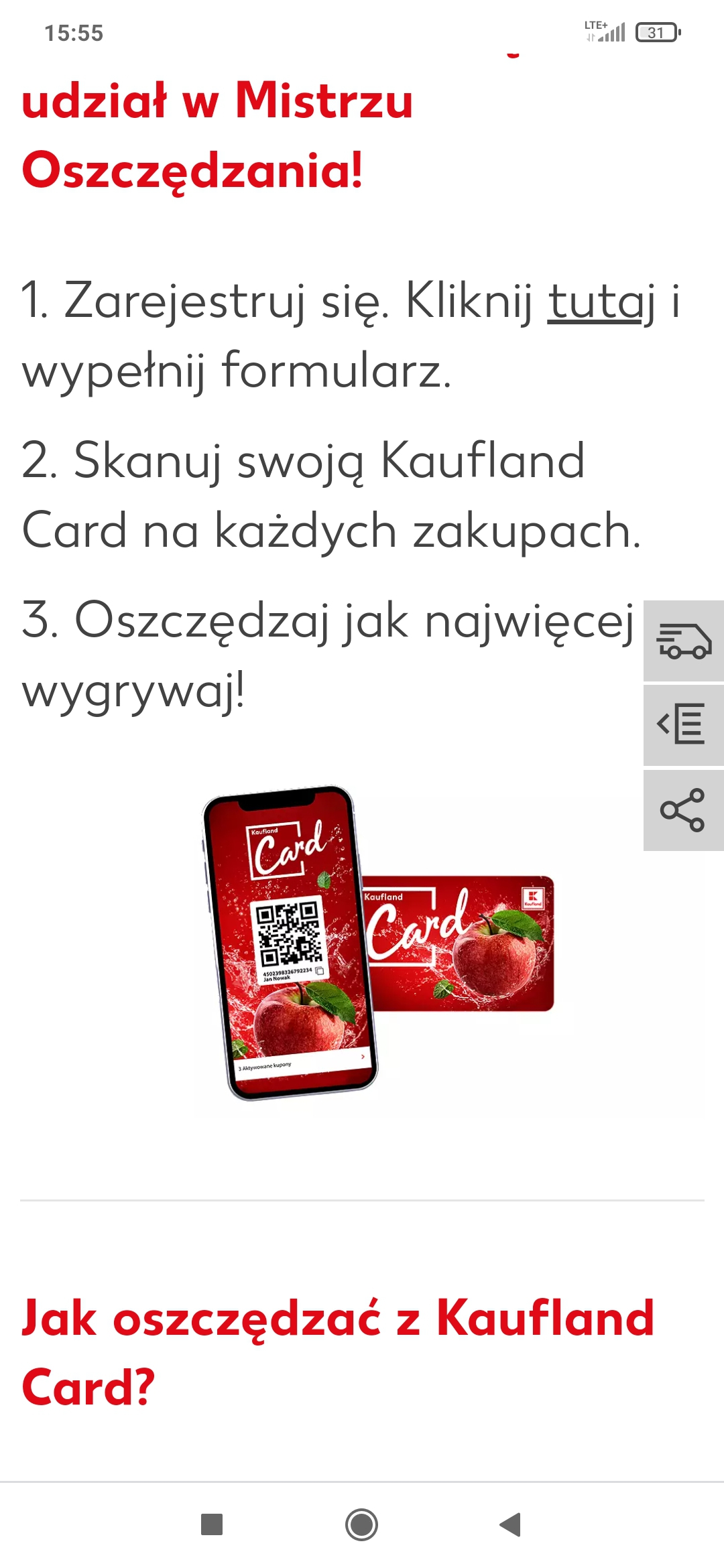 Należy uzyskać jak największą kwotę oszczędności, w ramach ofert dla użytkowników Kaufland Card (oferty specjalne i kupony), w trakcie dokonywania zakupów z kartą Kaufland Card w Kauflandzie.