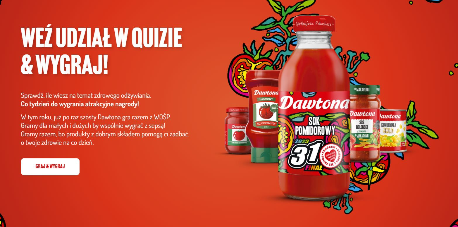 Należy wejść na stronę konkursową i odpowiedzieć na 10 pytań w Quizie. Są dwa rodzaje pytań – jednokrotnego i wielokrotnego wyboru. Każda poprawna odpowiedź zostanie nagrodzona pomidorem. Zdobyte pomidory pomogą w rozwiązaniu zadania finałowego. Po udzieleniu ostatniej odpowiedzi, należy rozwiązać zadanie finałowe czyli odpowiedź na pytanie konkursowe. Dla utrudnienia, litery składające się na pytanie, będą zasłonięte. Można je odsłonić za pomocą zdobytych pomidorów.
