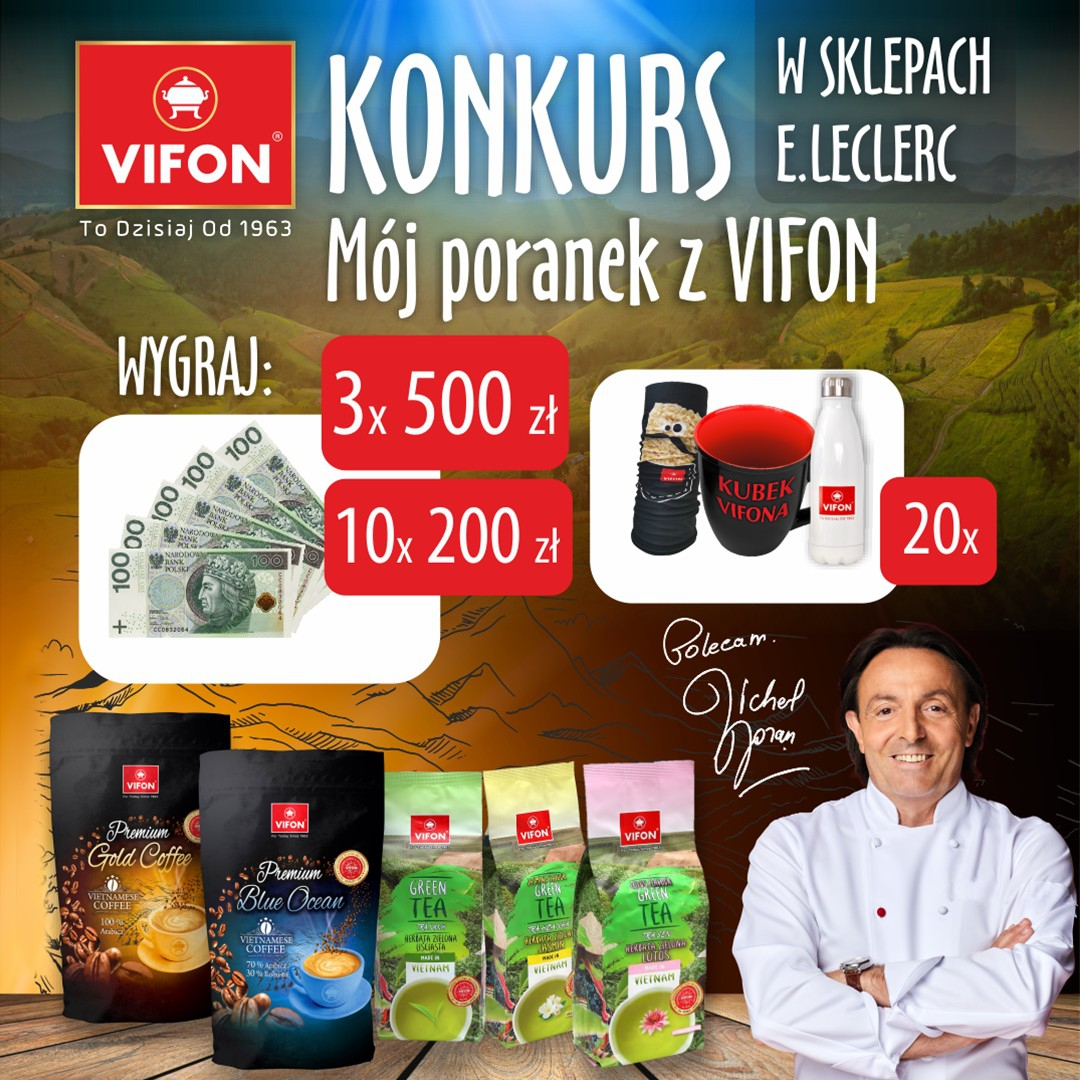 - Kup w E.Leclerc dowolną kawę VIFON lub zieloną herbatę VIFON w terminie 18.01-23.02.2022