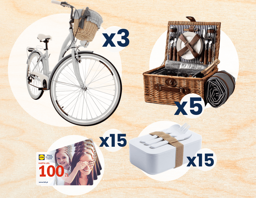- 15x Voucher do sieci sklepów Lidl o wartości 100 zł każdy