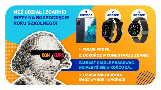 - dokończyć w sposób kreatywny zdanie w komentarzu pod postem konkursowym: