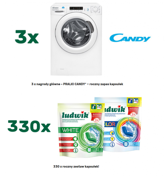 3x nagrody główne – PRALKI CANDY* + roczny zapas kapsułek