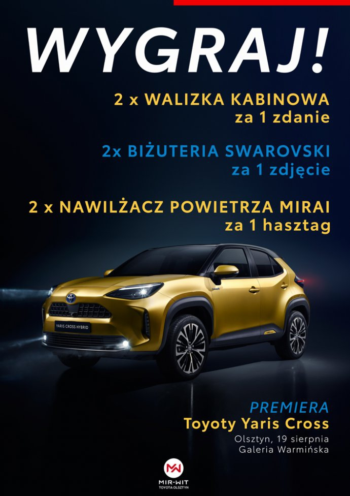 Opisz w komentarzu pod tym postem jednym zdaniem Toyotę Yaris Cross. Jak Ci się podoba? Z czym Ci się kojarzy? Jakie zdanie pasuje do niej najbardziej? To nie musi być odpowiedź na jedno z tych pytań. Liczy się dla nas Twoje zdanie