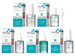 zestaw odżywek z serii uzupełniającej pielęgnacji paznokci dłoni i stóp, turkusowej linii marki Nail Tek.