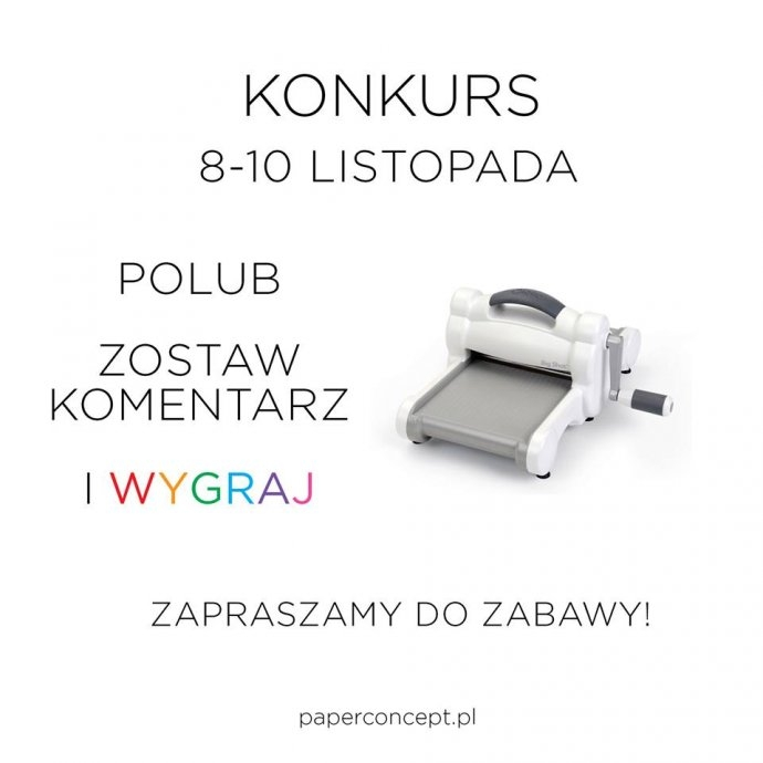 Spośród wszystkich komentarzy wybierzemy jeden, którego autor otrzyma maszynę tnąco - wytłaczającą Sizzix Big Shot. Zestaw obejmuje maszynę Big Shot, platformę bazową z przekładkami oraz standardowe przezroczyste płytki do wycinania.