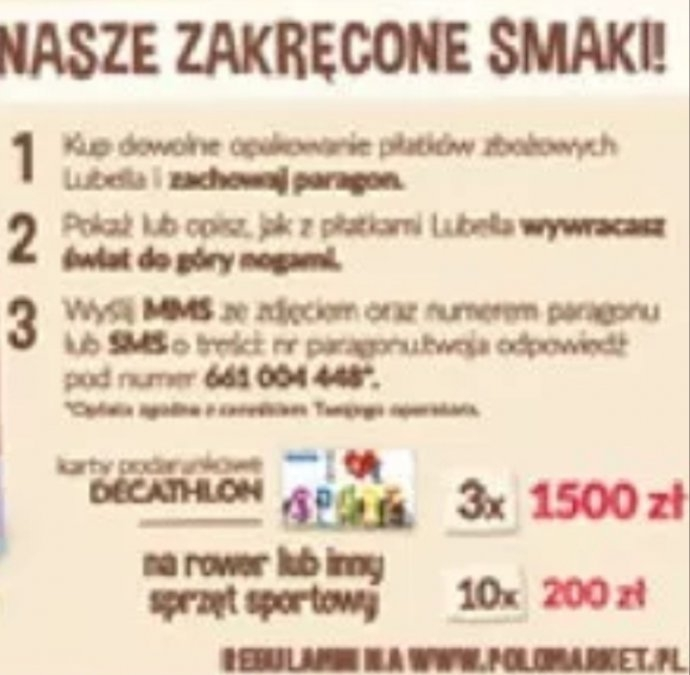 MMS ze zdjęciem oraz numerem paragonu lub SMS o treści nrparagonu.twojaodpowiedż na numer 661004448,