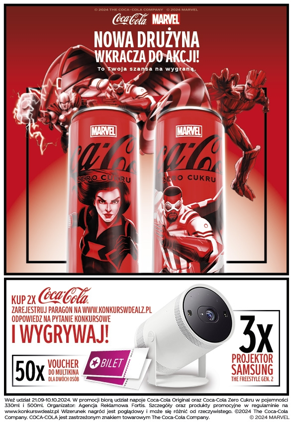 - Kup w Dealz 2 dowolne napoje Coca-Cola w puszce 330ml. lub butelce 500 ml. i zachowaj paragon.