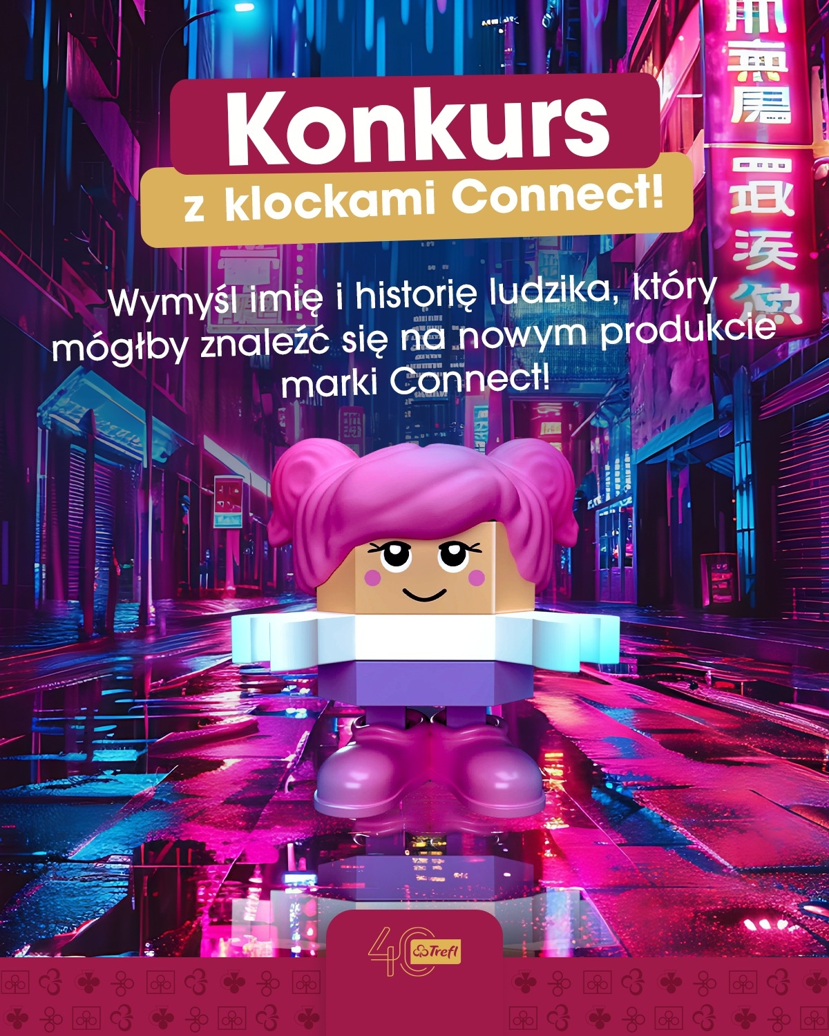 Wymyśl imię i historię figurki, która mogłaby znaleźć się na nowym produkcie marki Connect. Imię powinno mieć maksymalnie 5 liter, a historia nie więcej niż 500 znaków.