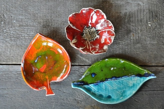 2. Ceramiczny liść w kolorze pomarańczowo-zielonym,