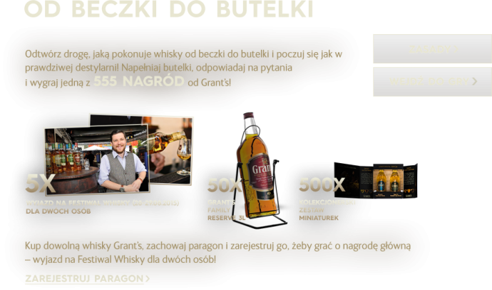 Aby grać o nagrodę główną należy zakupić dowolna whisky, zachować paragon i zarejestrować go na stronie.