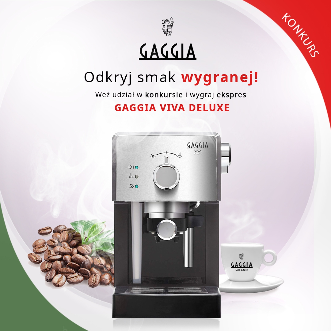 Wybierzemy aż 6 zwycięzców wśród których tylko jedna osoba będzie miała szansę zgarnąć ekspres Gaggia Viva Deluxe! Pozostałe osoby mogą wygrać zestaw degustacyjny kaw świeżo palonych 100% Arabica lub kod rabatowy na kawę w wysokości 10%