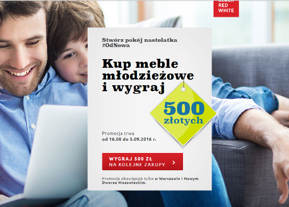 b) dokonania zakupu dowolnych mebli z kolekcji młodzieżowych BRW za kwotę minimum 1500 zł w jednym ze wskazanych salonów w Załączniku nr 1 do
