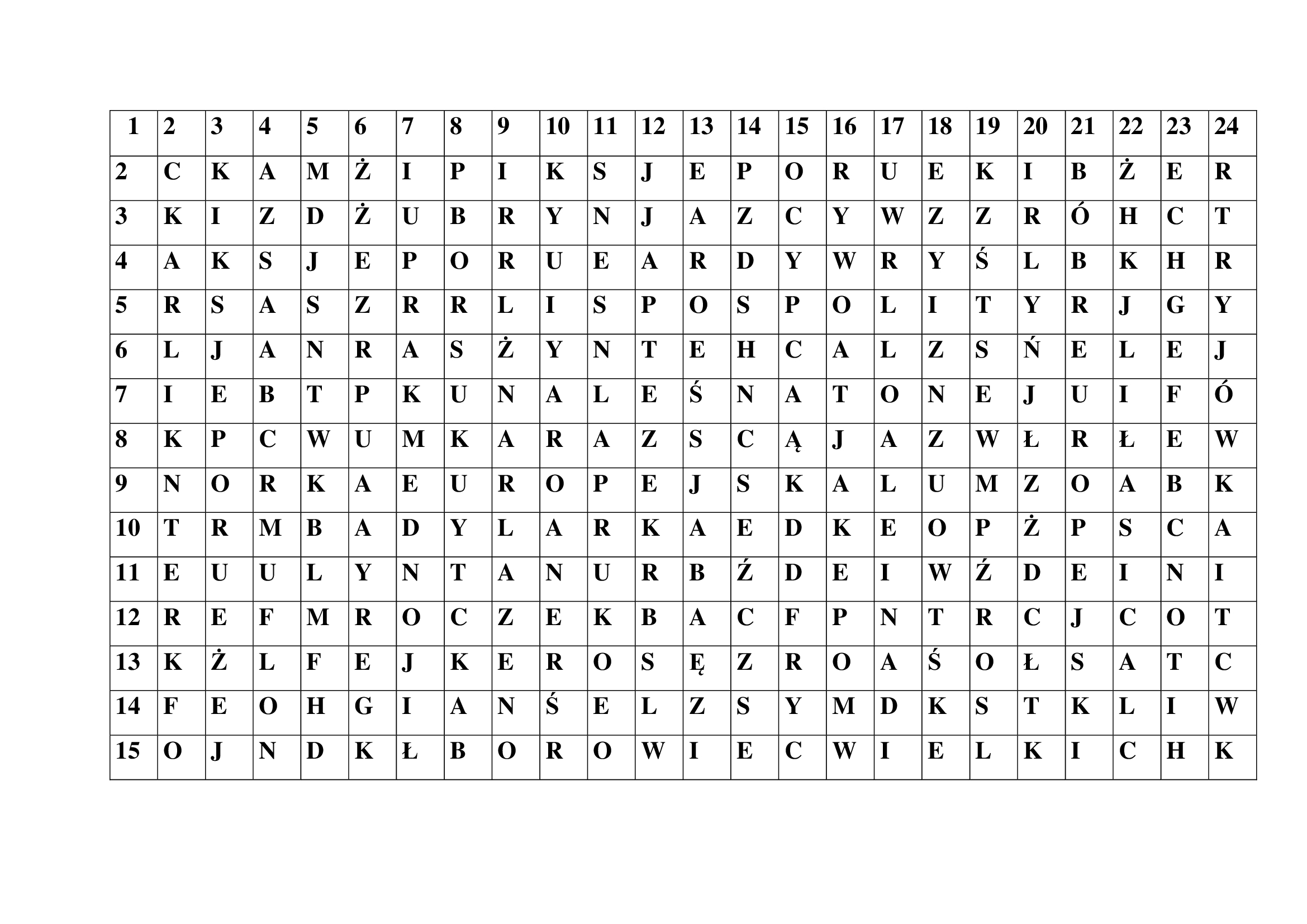 Można je odczytać w rzędach: od lewej do prawej lub od prawej do lewej oraz w kolumnach: z góry na
