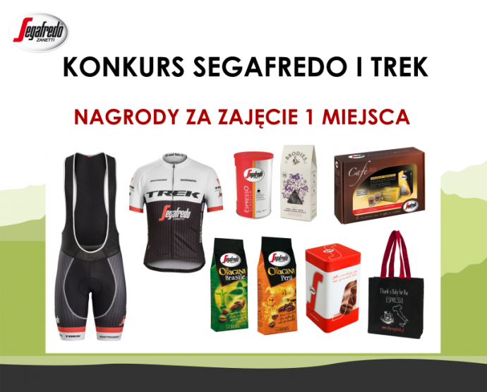 miejsce I: strój rowerowy: koszulka Bontrager Trek Segafredo Replica i spodenki kolarskie Bontrager Trek Segafredo Replica + kawa Espresso Classico + 2 kawy Le Origini w puszce + zestaw Hongkong Espresso + herbata Earl Grey w piramidkach + torba bawełniana