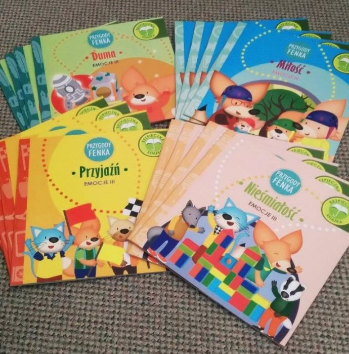 Zestaw czterech książeczek dla dzieci w wieku przedszkolnym, z autografem
