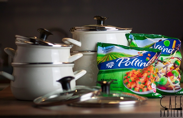 1. 8-elementowy zestaw okuwanych garnków oraz 18-sto składnikowy zestaw mrożonek z Poltino
