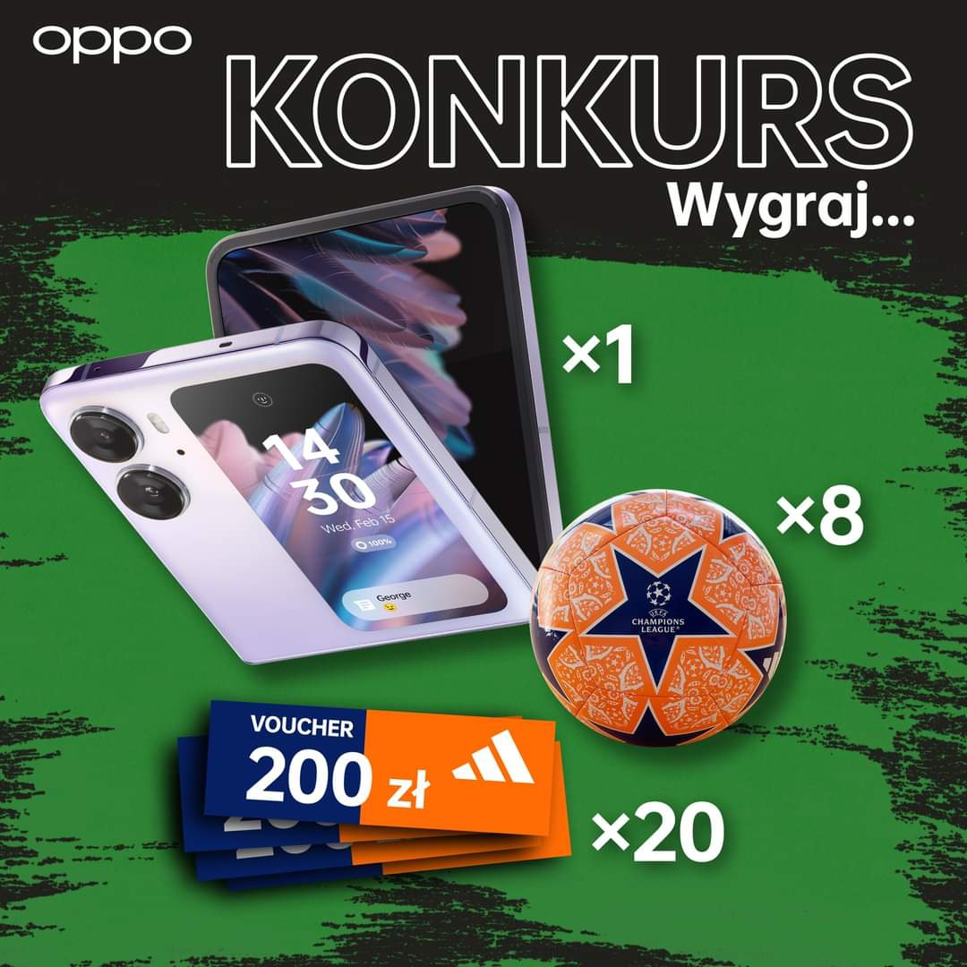 OPPO Find N2 Flip, 8 piłek z serii UCL 2023 adidas i 20 voucherów o wartości 200 zł do sieci sklepów adidas - na zakupy online i w aplikacji