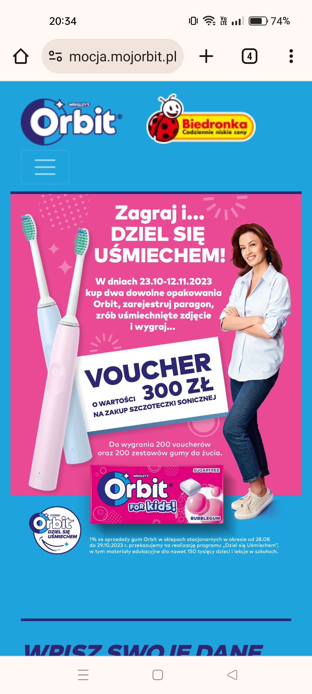 W sklepach sieci Biedronka kup dowolne opakowanie Orbit, zrób kreatywne, uśmiechnięte zdjęcie i zarejestruj paragon.
